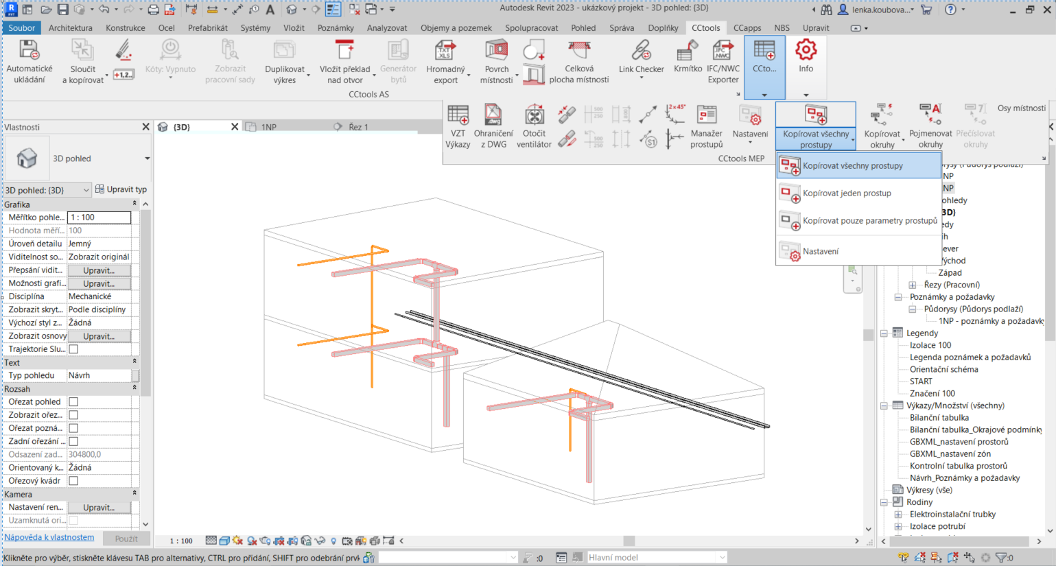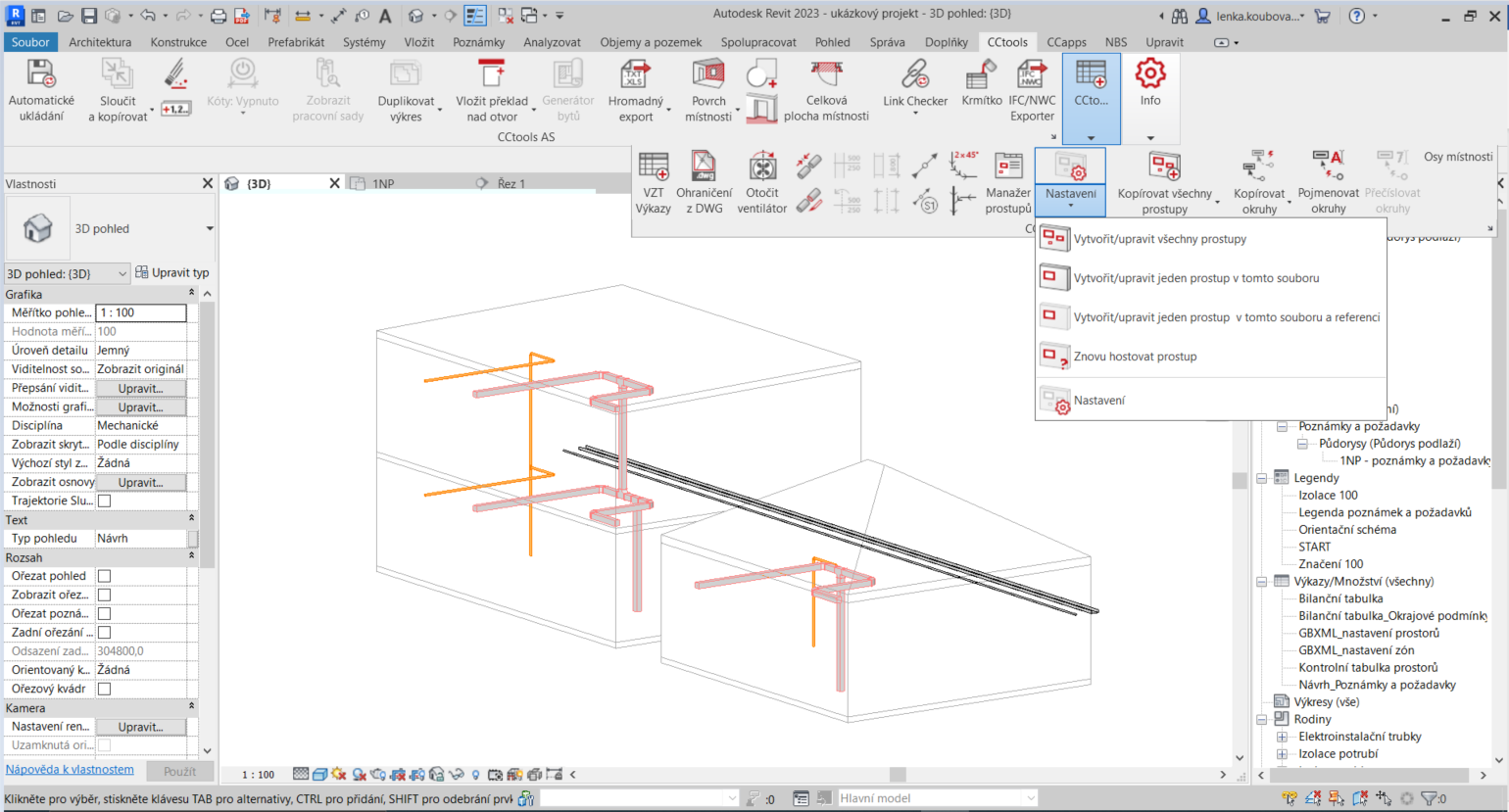 Aby nástroj mohl fungovat a vkládat prostupy, je potřeba v projektu mít rodinu „Prostup.CC“. Tato rodina je k dispozici v šabloně „CC_Stavba_19“.