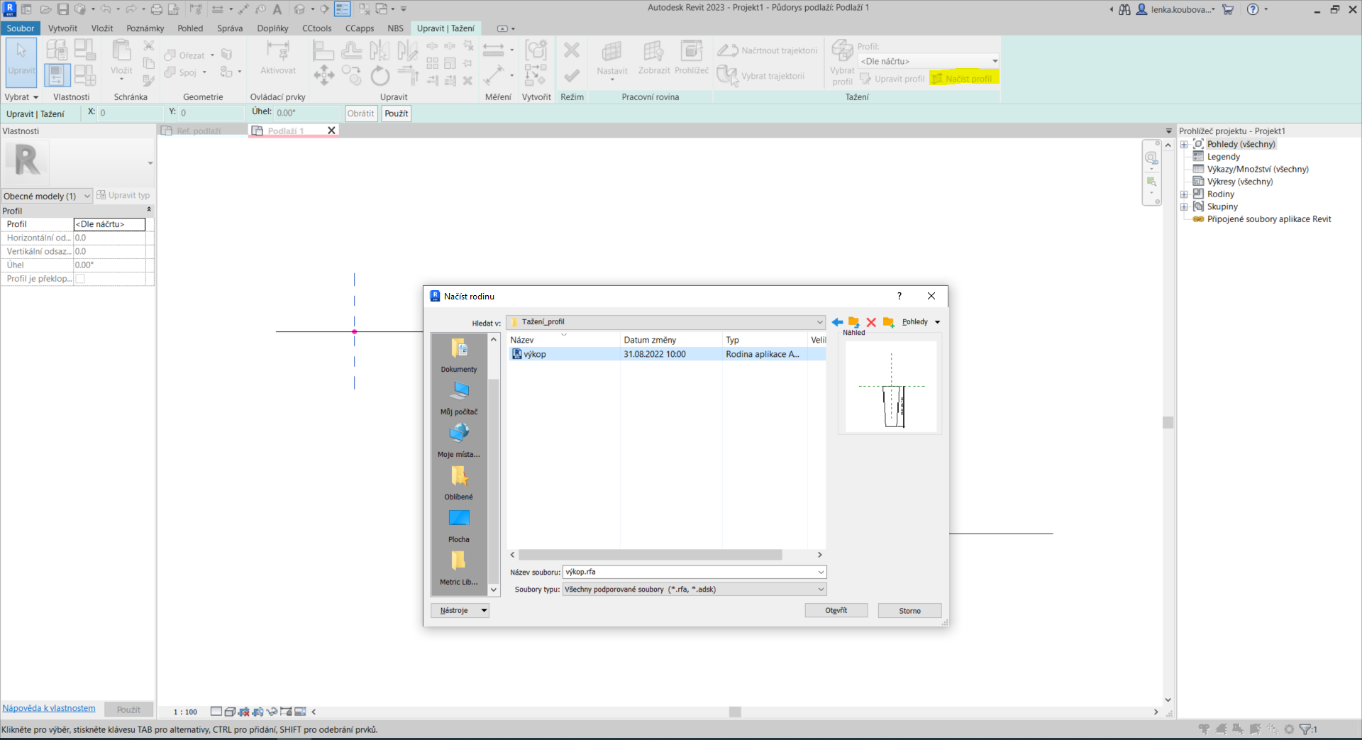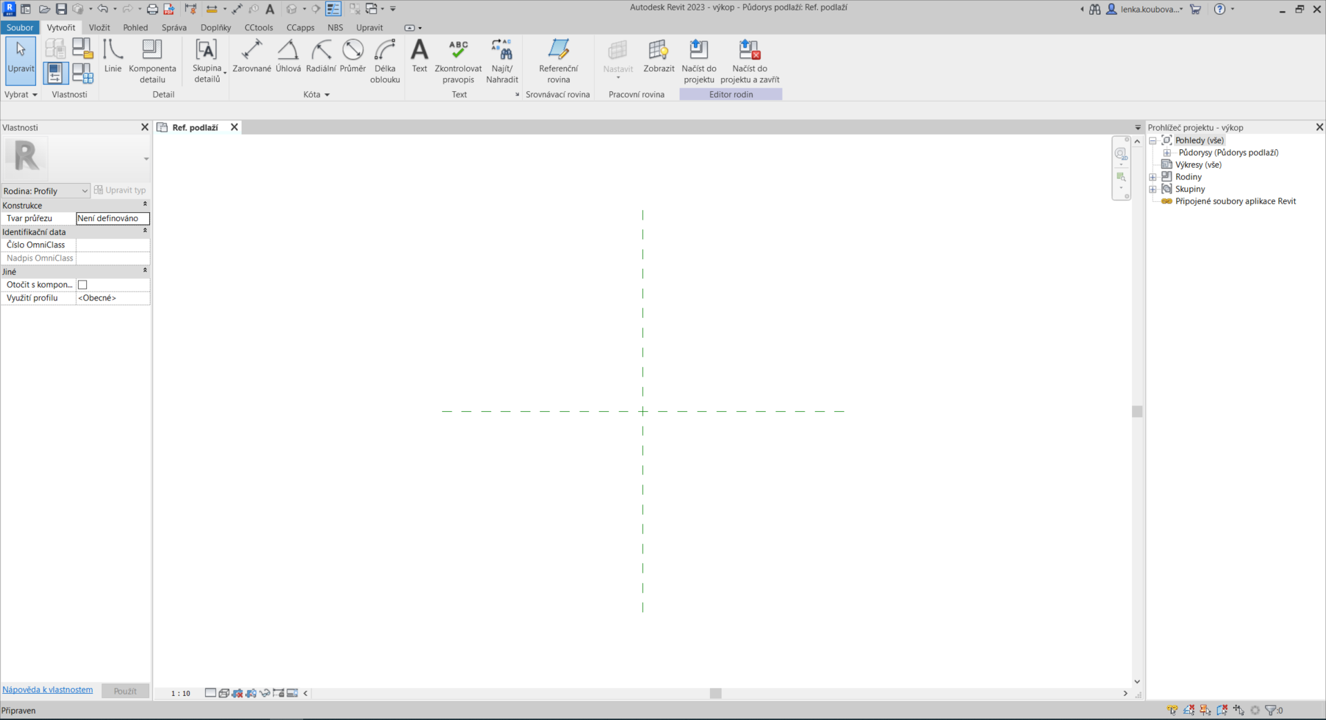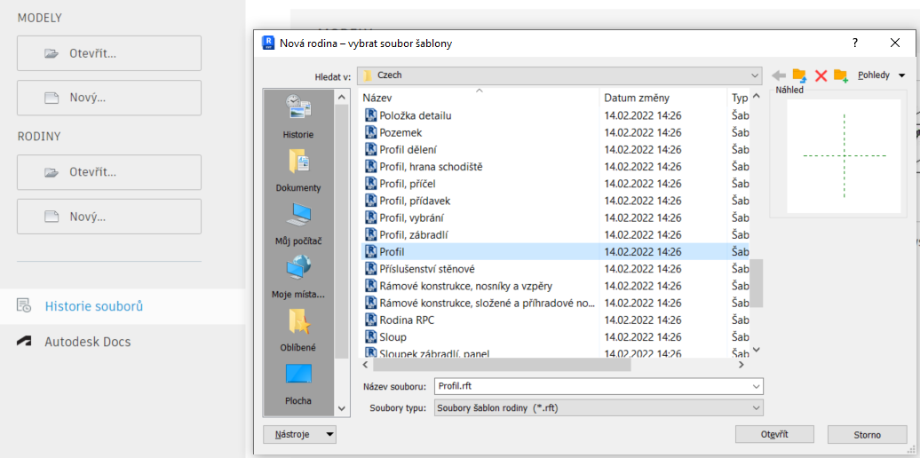 Tvorba samotného profilu je jednodušší než tvorba stejného profilu přímo v tažení. Abychom mohli profil vytvořit, je potřeba založit novou rodinu na šabloně „Profil“.