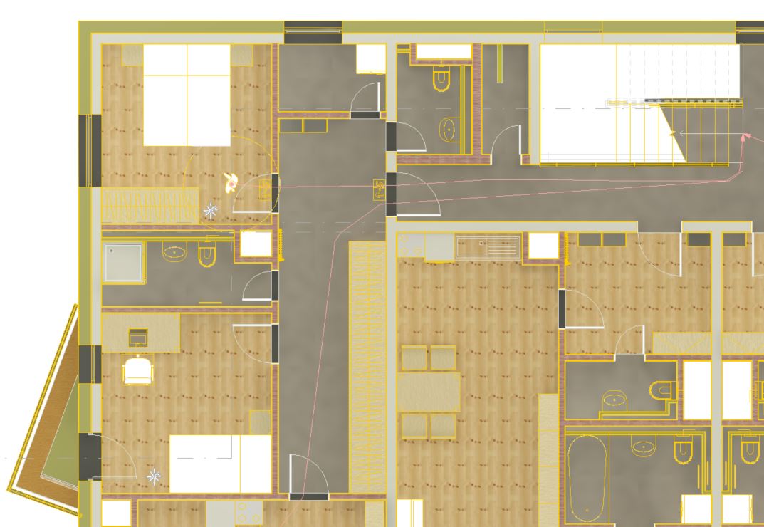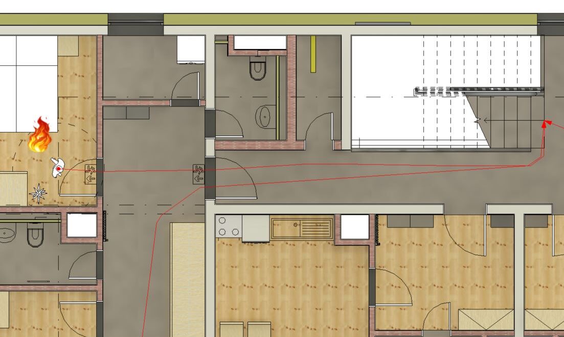 A co vlastně tato analýza zjišťuje? Můžeme se pomocí ní dovědět nejkratší trasu úniku osob před požárem, můžeme pomocí ní zjistit, který únikový východ bude lepší využít, anebo třeba zanalyzovat rozmístění nábytku. Nepřekáží-li v cestě, kterou bude proudit velké množství lidí. Pomocí analýzy zjistíte délku úseku a také čas, který zabere cesta z bodu A do bodu B. Co je podle mě docela nešťastné, je to, že tato analýza nefunguje na rozdílných výškových kótách, tudíž v bytovém domě zanalyzujete maximálně tak jen jedno podlaží. Bude tu stejný problém i během analýzy jednoho podlaží s různými výškovými poměry. Teď už si půjdeme ukázat a vysvětlit veškerou práci a možnosti analýzy.