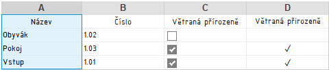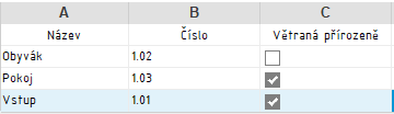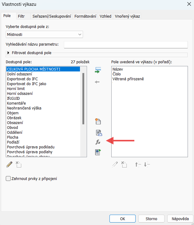 Vytvoříme si výkaz, do kterého v části Pole, vyberu všechny požadované parametry včetně našeho parametru typu Ano/Ne – v našem případě „Větraná přirozeně“.