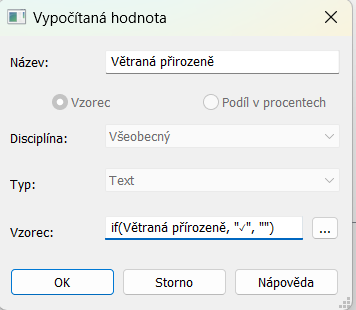 Určíme název našeho nového parametru – může být stejný jako ten původní, jestli nám to tak vyhovuje. Do vzorce napíšeme if(Název původního parametru, “požadovaný symbol“, “”).