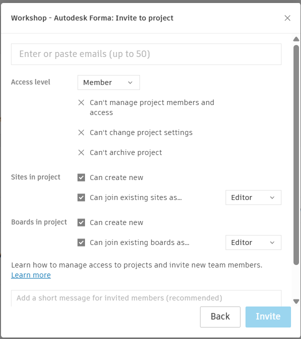 Propojení Autodesk Forma s Autodesk Construction Cloud představuje další krok směrem k centralizované a plynulé práci s daty napříč celým projektem. Uživatelé získávají možnost pracovat s Formou přímo z prostředí ACC, jednoduše spravovat přístupy, sdílet podklady a prezentovat návrhy pomocí Forma Board v kombinaci s daty z Autodesk Docs.
