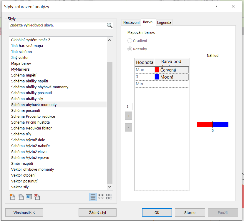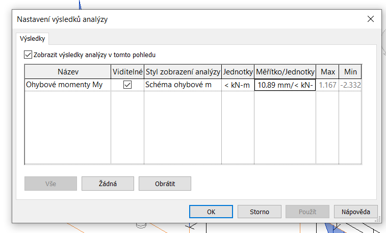 Poslední věc, kterou si dnes spolu ukážeme je to, jak si můžeme změnit vzhled výsledků. Nejste-li spokojení s tím, jak Vám Revit vybarvil jednotlivé síly a nebo určil měřítko, potřebujete přesně toto. Obě změny vyvoláme tím, že klikneme kamkoliv na model v pohledu. Musíte ale mít zobrazené výsledky.