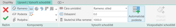 Při vytváření schodiště přibyla část Vytvořit schodiště, která se nachází napravo od části Komponenty. V této části lze přehledněji definovat vlastnosti schodiště.