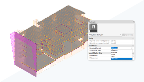 Nově lze nastavit automatizaci analytického modelu tak, aby při vytváření nebo aktualizaci analytické desky byla využita analytickým modelem tloušťka konstrukční vrstvy stěny, podlahy nebo desky.