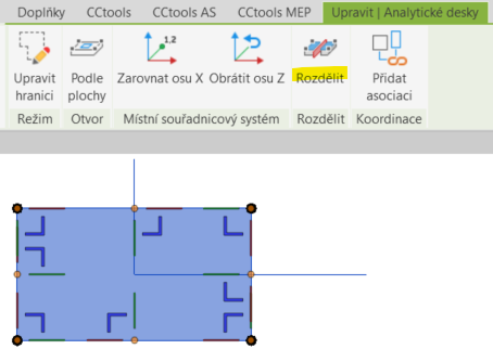 Nyní lze rozdělit analytické desky a znovu jim přiřadit zatížení a okrajové podmínky.