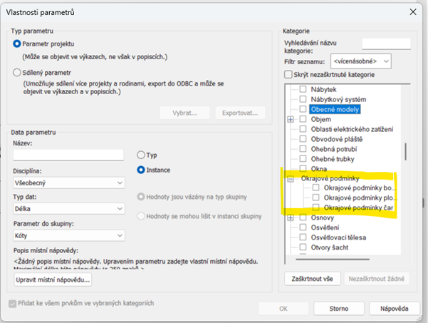 Byla přidána nová kategorie parametrů konstrukčních okrajových podmínek.