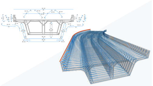 Takto vytvořené podélné tyče sledují geometrii příčné výztuže a automaticky se jí přizpůsobují i při její změně.
