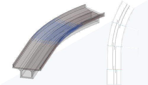 Nově lze výztuž vkládat podél 3D trajektorie. Díky tomu je možné modelovat složitější výztuž, například u mostních konstrukcí.