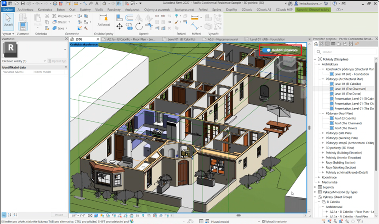 Zlepšení výkonu a kvality připojených modelů aplikace Revit v akcelerovaných pohledech