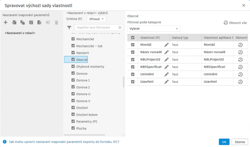 Mapování parametrů IFC