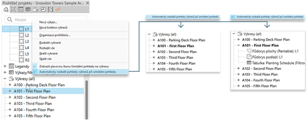 Nově můžete nastavit, zda se uzly výkresu při přidání nového pohledu do výkresu automaticky rozbalí.