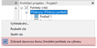 Tou novinkou jsou stavové ikony umístění pohledu na výkres. Jak název napovídá, jedná se o indikátor toho, zda je daný pohled umístěn na výkrese. Pokud ano, je čtverec vyplněný, pokud ne je bílý.